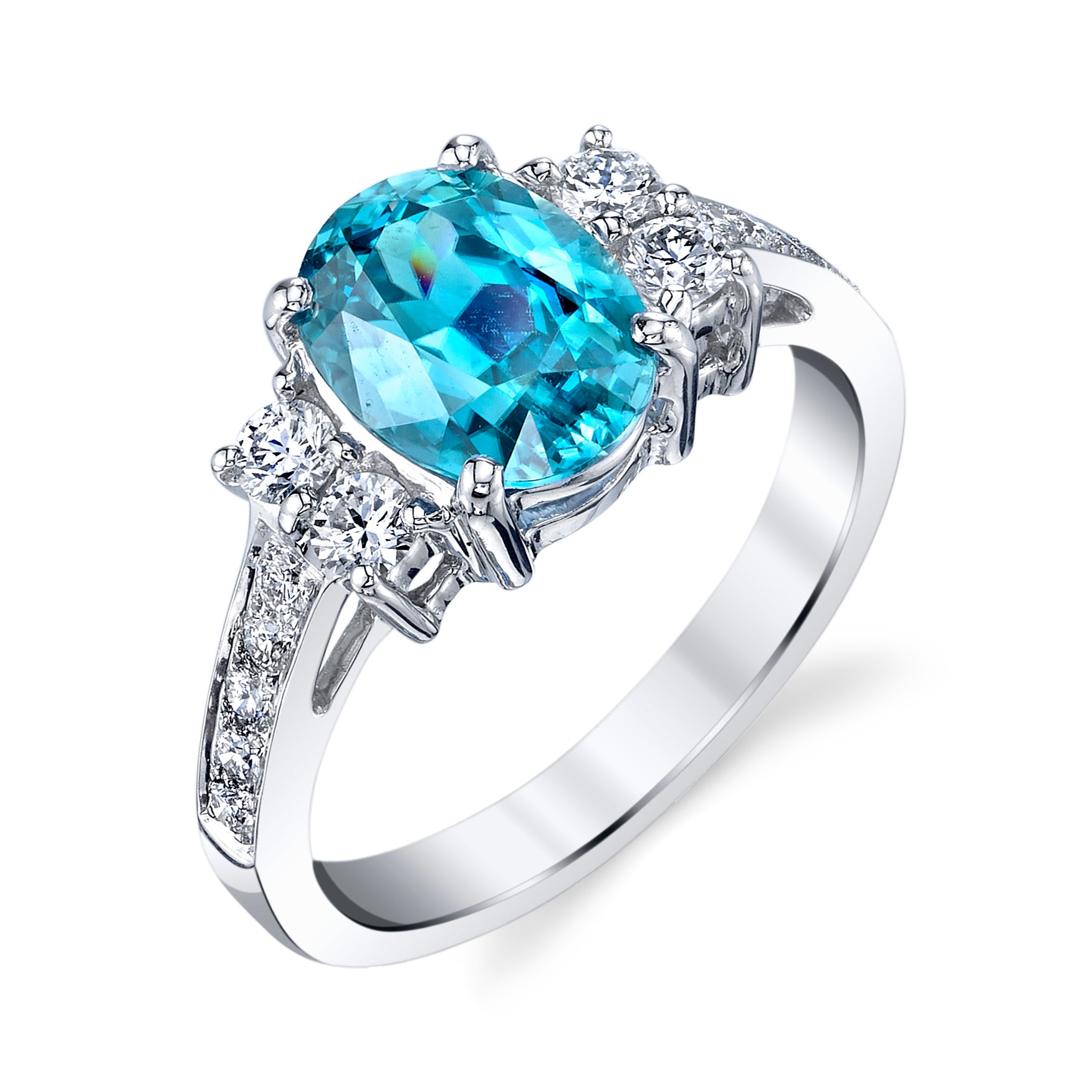 Blue Zircon and Diamond Ring